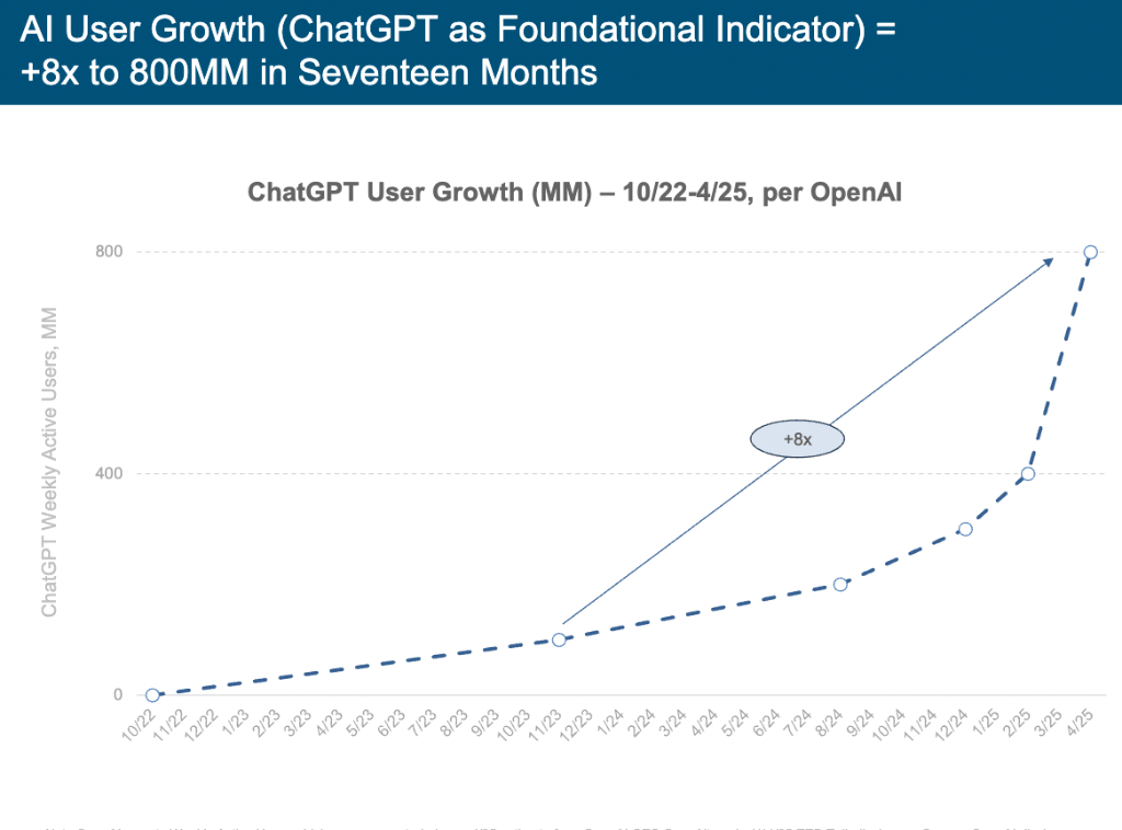ChatGPT曾正在 17 个月内狂揽8亿用户,我们正处于 AI 驱动的手艺超等周期初步。