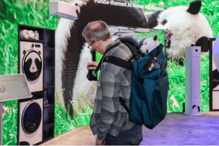 同样来自中国的肯綮科技发布了全新产物π6外骨骼机械人。这里既能看到海信、TCL等持续参展十多年的老牌科技企业,