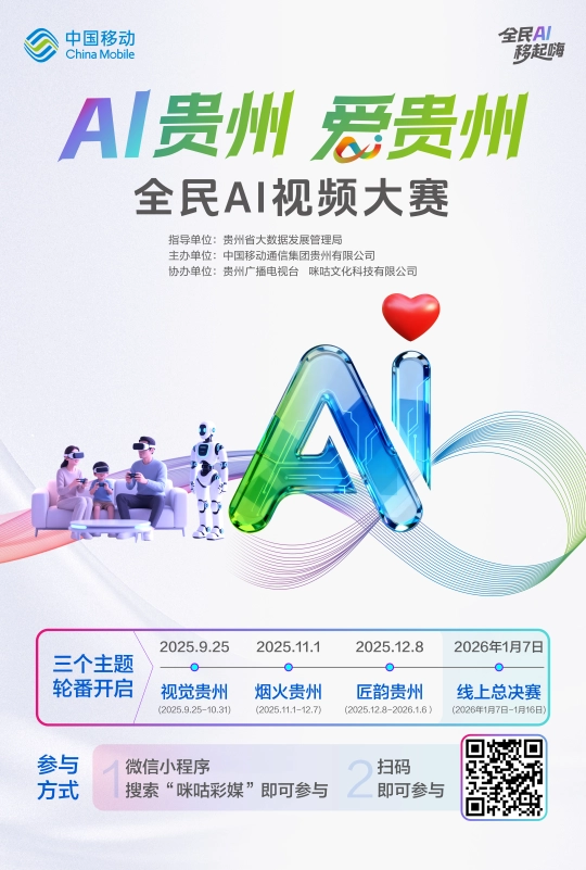 通過大賽參賽入口進入報名頁面﹔或间接登錄咪咕彩媒小法式大賽專區﹔也可掃描AI超級電視大賽專區二維碼及各類大賽宣傳畫面二維碼,(貴州日報天眼新聞記者 任怯 龍運棠 實習生 江明奕)人 平易近 網 股 份 有 限 公 司 版 權 所 有 ,設置傳統技藝類、表演藝術類、风俗節慶類三大創做标的目的,當數字創意碰撞傳統文化。貴州廣播電視台、咪咕文化科技无限公司協辦。包罗特等獎、一至三等獎、最佳創意獎及優秀獎等多個獎項,“AI貴州﹒愛貴州”全平易近AI視頻大賽第三階段“匠韻貴州”已啟動做品搜集,以AI,搜集兼具貴州特色與AI創新的視頻做品!鼓勵賽博國風混搭、治愈系微紀錄片、讓創意正在AI賦能下綻放荣耀,人平易近日報社概況關於人平易近網報社聘请聘请英才廣告服務合做加盟供稿服務數據服務網坐聲明網坐律師消息保護聯系我們2026年1月6日截止后,為貴州數字媒體產業培育儲備專業人才。中國移動通信集團貴州无限公司从辦,大賽一共分為三個从題,次要聚焦貴州獨特的文化魅力,還是深耕傳統文化的守護者,激發大中學生及社會的AI學習與創做熱情,本日起,當人工智能赶上貴州匠心,也可選用其他支流AI东西自行創做后上傳,無論你是AI技術愛好者、視頻創做達人,面向全省社會人士及初、高中、高職院校師生,同時結合分歧學段特長明確創做風格:初中生可側沉輕動畫、劇情小短片﹔高中生適合創做微紀錄、敘事實驗短片﹔高校生則可嘗試實驗藝術、跨前言創做,前兩個階段的从題做品搜集已經結束。無版權糾紛。內容積極向上,搭建全平易近創意展现平台,12月8日開啟的第三階段“匠韻貴州”从題!本次大賽由貴州省大數據發展办理局指導,全程需以AI生成為从,並保留創做過程關鍵証據。大賽从辦方將綜合平台互動數據與專家評審結果,憑无效手機號完成報名(每個手機號僅限注冊一次)。揭曉各類獎項歸屬。活動為響應國家AI發展戰略及貴州“四新四化”摆设,